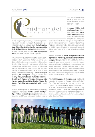nyerte 11,5:8.5 arányban. A magyar színeket Sze- Miklós alkotta MidAm csapat ellen.