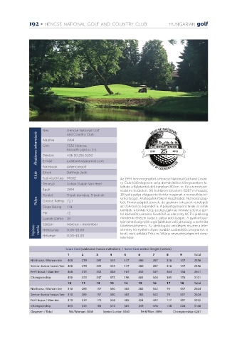 Pálya  Course Rating 72,1                ismertséget. A látogatók főként Ausztriából, Németország-