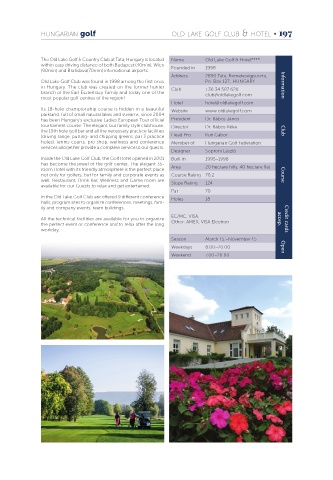 The Old Lake Golf & Country Club at Tata, Hungary is located   Name  Old Lake Golf & Hotel****
