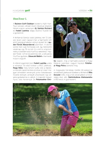 növelte előnyét, amelyet a harmadik nap vé- Donald (+85), míg a nők versenyében a mind-